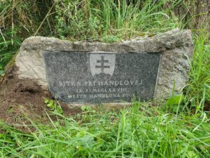 Aj v roku 1678 bola horná Nitra vtiahnutá do vojny medzi cisárskymi bojovníkmi a vojskami kuruckého vodcu Imricha Tököliho, podporovaný Turkami. Spustošili Nitrianske Pravno, Prievidzu s okolím, ale aj Handlovú. Potom odtiahli na Zvolen, kde sa utáborili a ohrozovali banské mestá, ktoré nútili platiť poplatky. Toto ohrozenie bolo pre Handlovú ukončené bitkou, ktorá sa odohrala presne 9. novembra 1678. Cisársky generál Juraj Štefan, gróf z Wrbna a Freundentálu, kurucov porazil a z oblasti banských miest vyhnal. Nebezpečenstvo pre banské mestá v tom období týmto pominulo. Medzi horným koncom Handlovej a tesne pred Novou Lehotou, v Handlovskom sedle, stojí betónový kríž. Na prvý pohľad nič mimoriadne, pretože na Slovensku sa v minulosti kríže vo veľkom pri cestách stavali. Až prednedávnom bolo zistené, že na mieste, kde kríž stojí, sa v 17. storočí odohrala táto bitka.