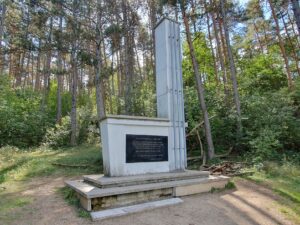 Bol postavený na mieste popravy 35 neznámych partizánov. Jeho autorom je Ján Pribela, zamestnanec Závodov 29. augusta. Nachádza sa na úpätí vrchu Stráň, za riekou Nitrou. V texte vyrytom na pomníku sa píše: Na tomto mieste fašisti v roku 1944 zverským spôsobom povraždili 35 neznámych hrdinov, bojovníkov za našu slobodu.